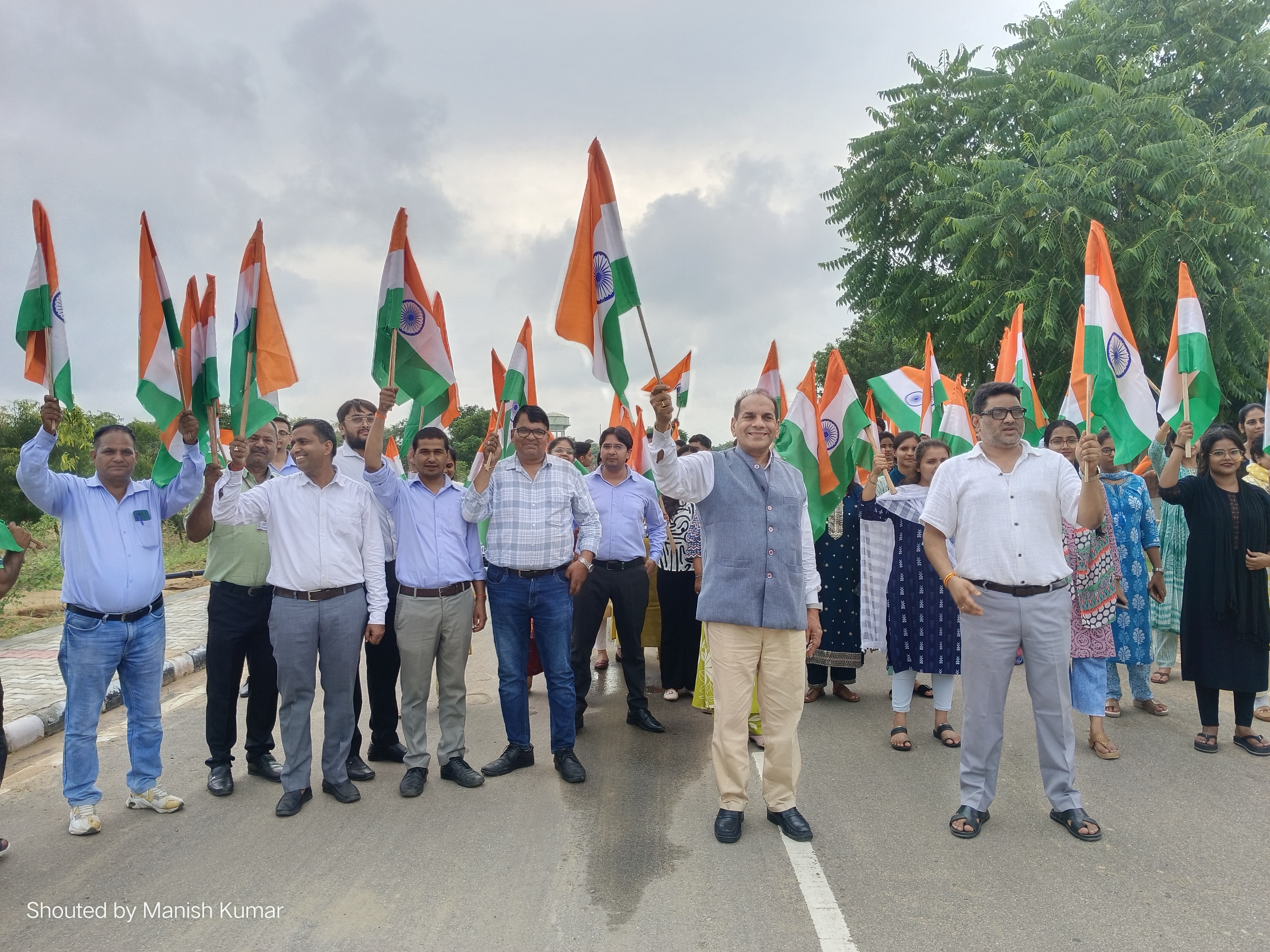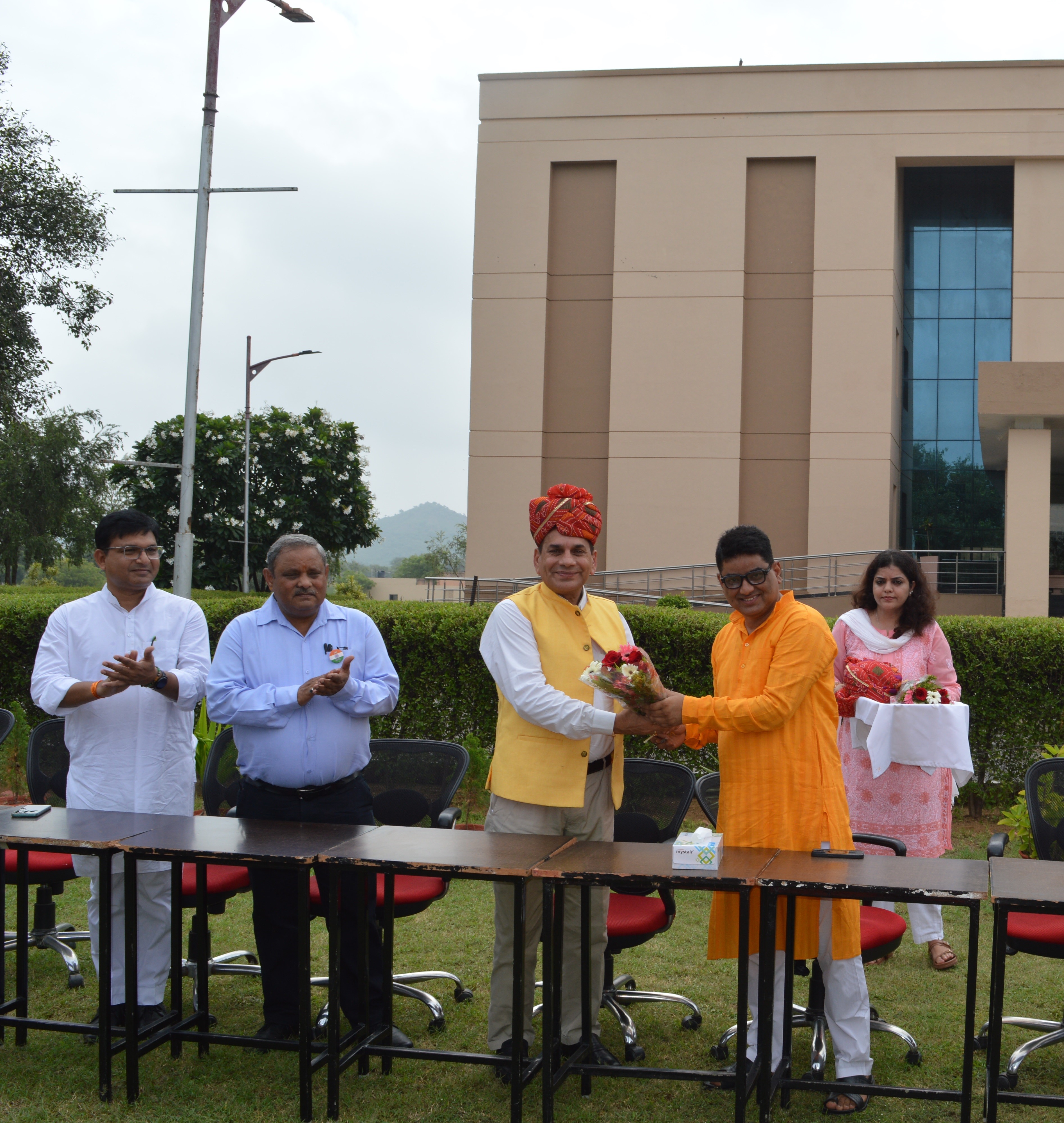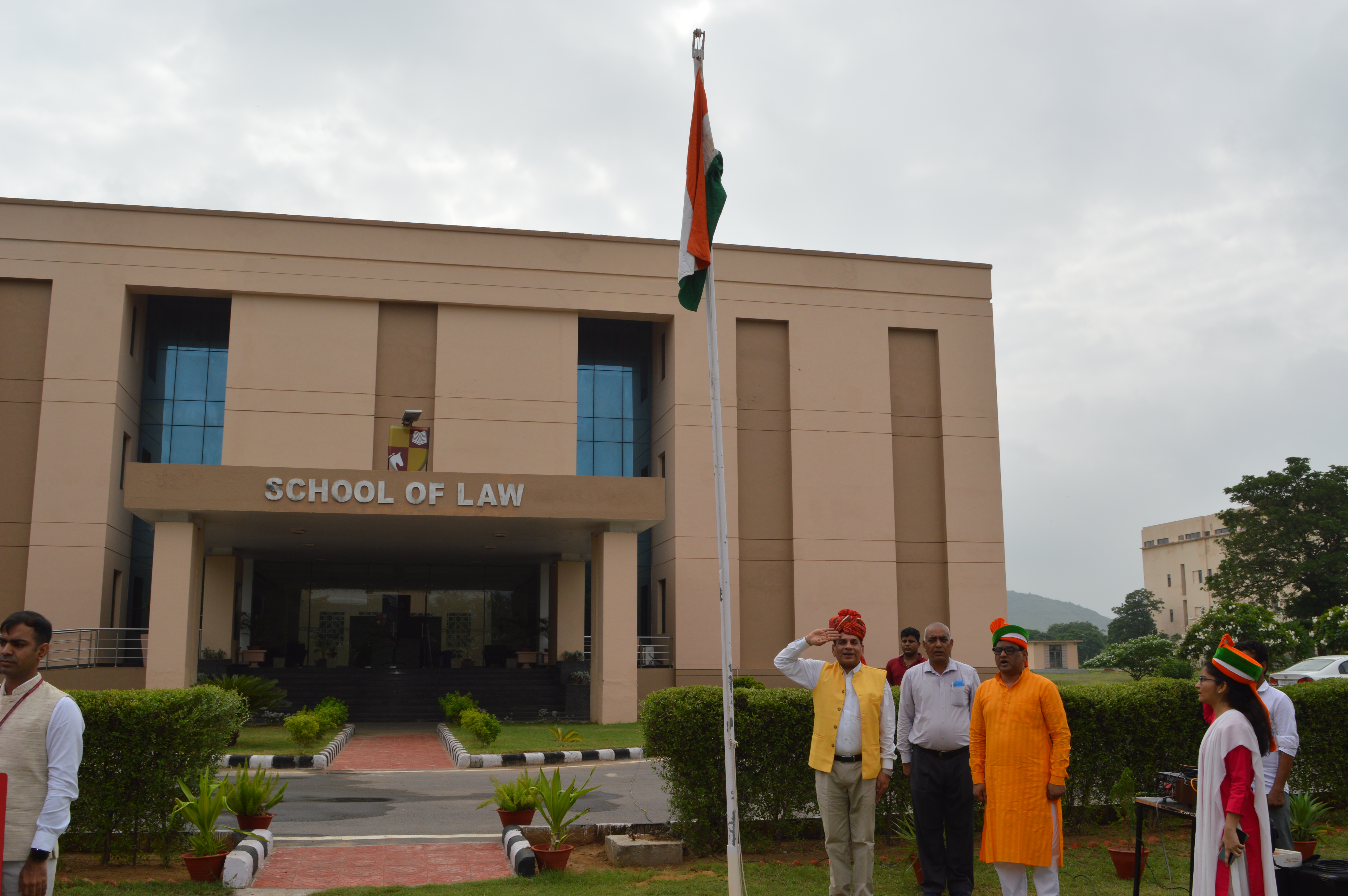 The flag hoisting ceremony was attended by the fraternity of Raffles University while the Honorable Vice Chancellor and the Registrar of the University were seen in Rajasthani traditional dress.