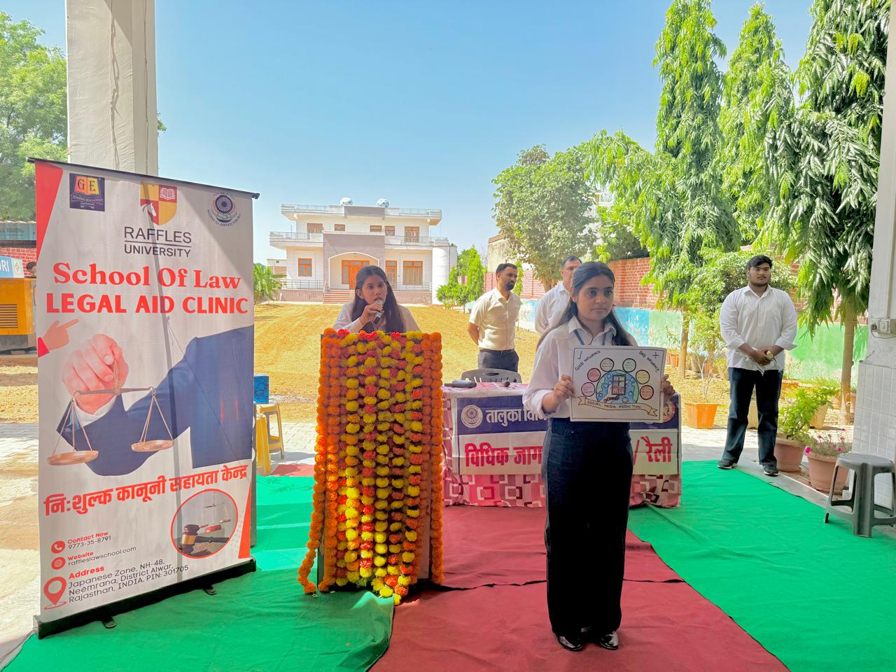 Date: 26thSeptember, 2025The School of Law, Raffles University, Neemrana, organised a Legal Awareness Programme at Tagore Public School, Bichpuri, Neemrana, with the objective of sensitising students about the harmful effects of drug abuse and the legal framework related to it. Students of the School of Law presented a skit highlighting the ill effects of drug addiction on individuals and society. In addition, Rohini, Suraj, Tanya, Himanshi, Saraswati, and Turniya shared their thoughts on how drug abuse impacts lives, how people fall into its trap, and also discussed its legal implications. Mr. Rajendra Kumar Yadav, Director, Tagore Public School, Bichpuri Neemrana, addressed the gathering and pointed out that, unfortunately, in today’s society people often associate drug use with status and prestige, which is an alarming trend. Mr. Aditya Pratap Singh, Assistant Professor, School of Law, Raffles University, explained the legal aspects of drug abuse and emphasised that drug addiction is like a dangerous path—once a person takes that direction, it becomes extremely difficult to return. Ms. Kiran, Para-Legal Volunteer (PLV) from Taluka Legal Services Authority, Behror, was also present and expressed her views on how drug abuse is a major cause of accidents, creating grave risks to both individuals and society. The programme witnessed active participation from all students and teachers of Tagore Public School, as well as Mr. Sahil (Assistant Professor) and students Dharmesh, Sarita, Sujal, Sandhya, and Sushma from the School of Law, Raffles University, who collectively contributed to the programme and supported its objectives.